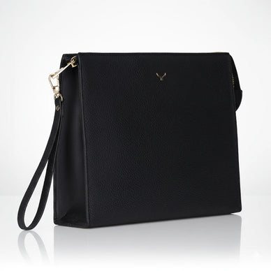 Diese aus hochwertigem Echtleder gefertigte Handgelenktasche vereint auf geschmackvolle Weise Eleganz und Funktionalität. Der leichtgängige Reißverschluss sorgt für die sichere Aufbewahrung Ihrer Wertsachen, während das minimalistische Design sowohl im Alltag als auch bei Abendveranstaltungen perfekt passt. Für die moderne Frau, die Wert auf Stil und Funktionalität legt, ist diese elegante Clutch die ideale Wahl – ob als Organizer in der Handtasche oder als eigenständiges Accessoire.