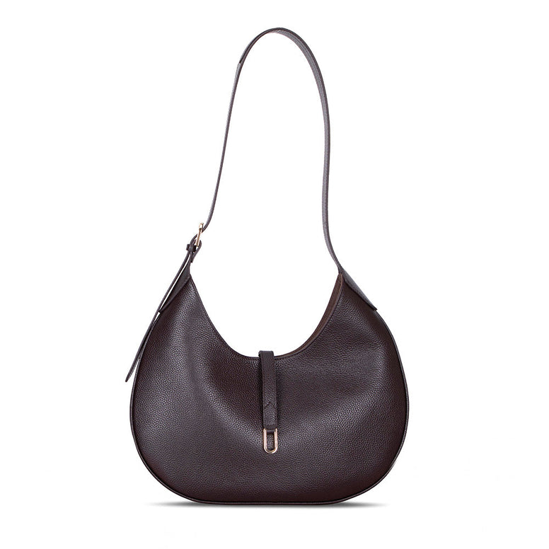 • Charakteristische Halbmond-Silhouette mit minimalistischem goldenen Schnallendetail